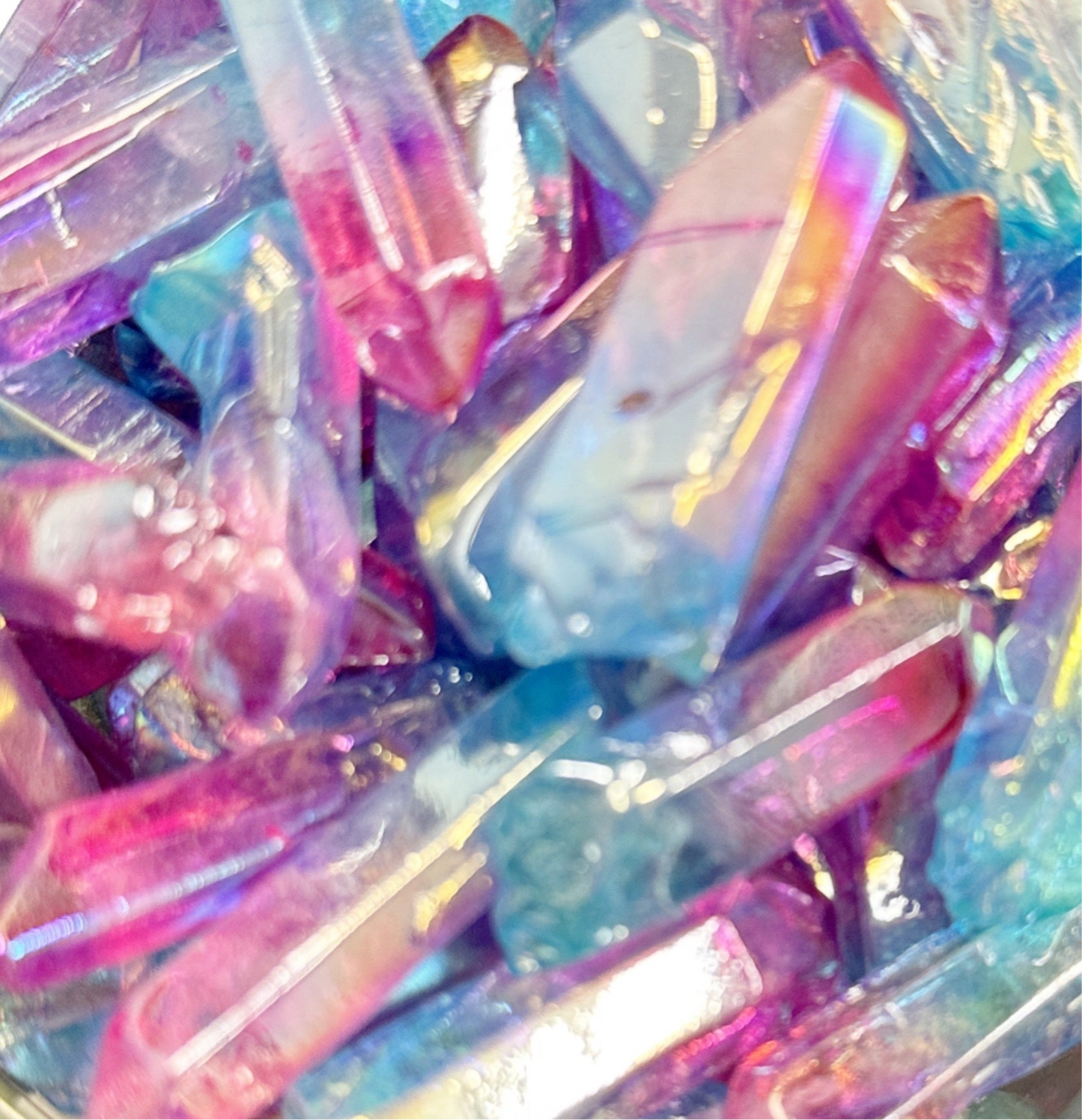 Rose Aqua Aura Quartz is a stone of communication, unconditional love, and connection to the divine. This stone will help: unite the mind, strengthen intuition, being able to see your true-self, enhance speech, assists in self growth, following your hearts desire, and connecting you to your higher self. Rose aqua aura quartz will help to improve successful relationships and divine truth.