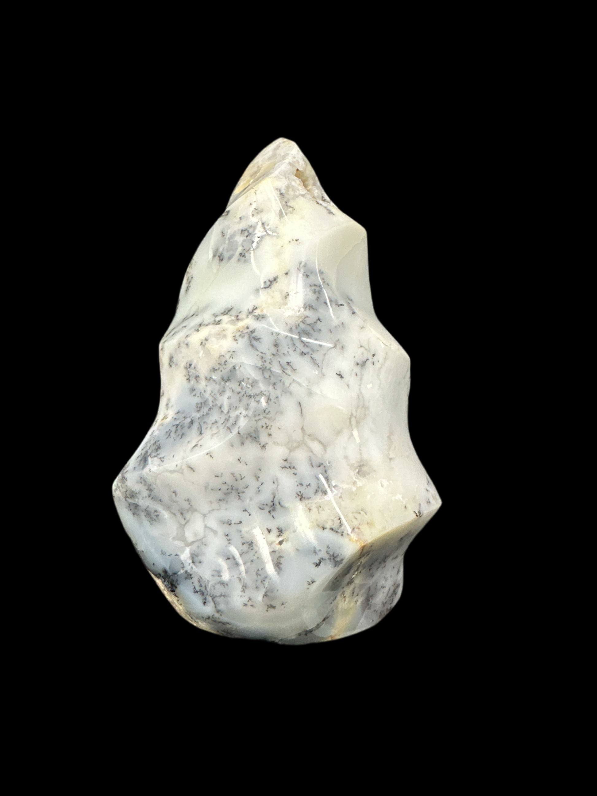 The energy of Dendritic Opal helps with one's growth, both within the physical body and spiritual body. This crystal allows you to be consciously aware of reality and giving clarity into your actions as well as balancing the actions. Dendritic opal will also help you organize your thoughts, feelings, and actions, while, helping you to accept others and being in a space of non-judgement of others.