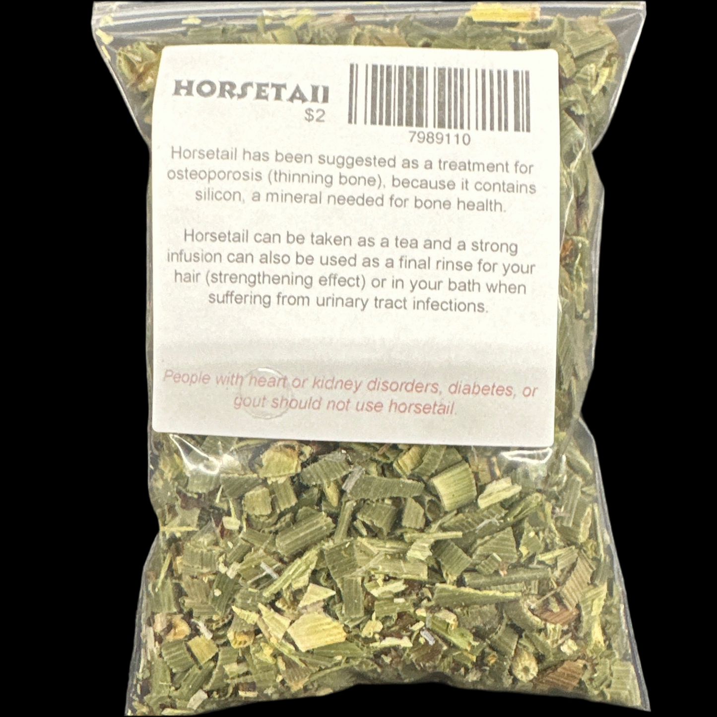 Horsetail has been suggested as a treatment for osteoporosis (thinning bone), because it contains silicon, a mineral needed for bone health.