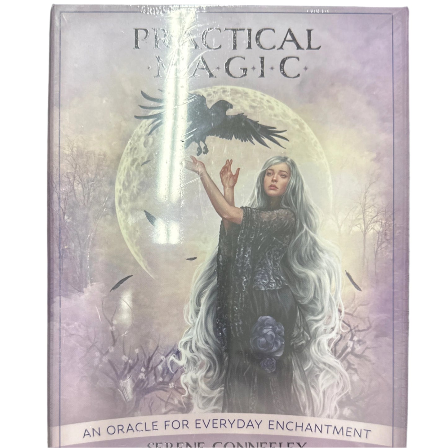 Practical Magic Deck and book set includes 36 cards, 304-page guidebook and a stand for displaying cards during meditations or altar work. Packaged in a deluxe wrap-around hardcover box with magnetic close.