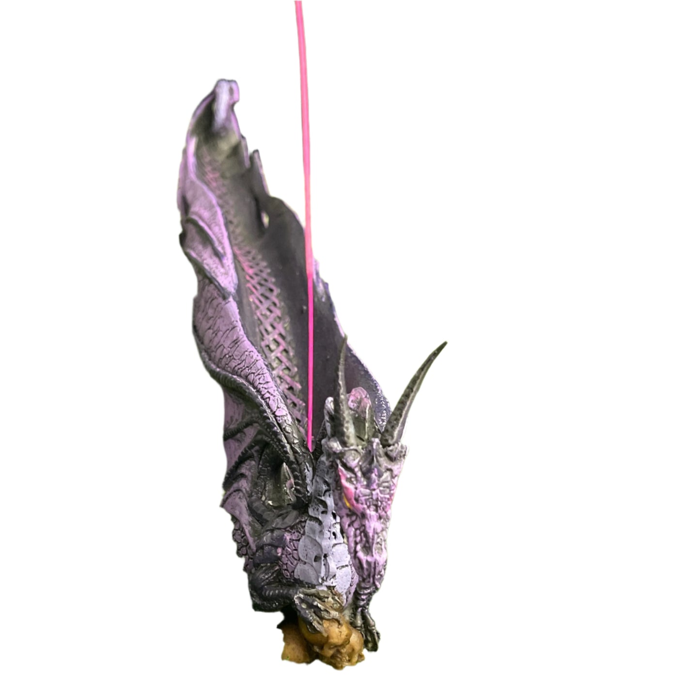 Bring a touch of fantasy to any room or space with this purple dragon incense burner. Crafted from polyresin. 12"L