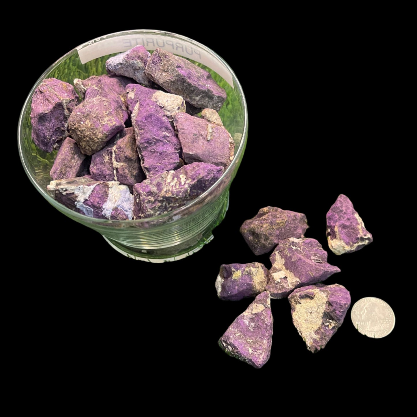 Purpurite is a powerful ascension tool that helps attune one to higher energies, as well as open up and connect the third eye and crown chakra. Working with this stone will help raise ones intuition levels and consciousness. Purpurite encourages those who have self imposed limitations tendencies to become more proactive. It reduces victim and martyr complexes and also calms panic attacks.