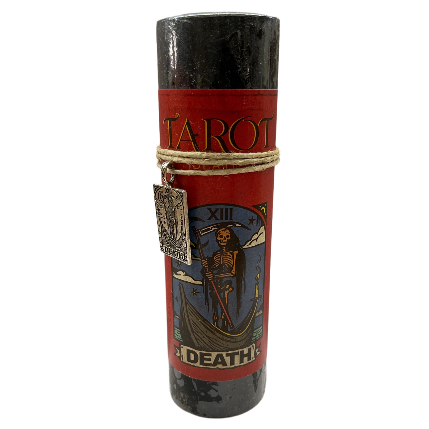 Each candle measures approximately 1.75" x 6.5" and is beautifully colored and scented. Each candle comes with a lead-free pewter pendant and a full color label that explains the meaning of the featured card. Pendant measures approximately 1.125" x .75". Candle colors may vary slightly from shown.
