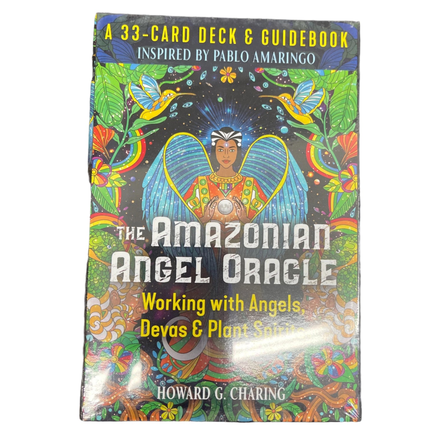 The deck includes 33 vivid full-color cards, each featuring an angel, deva, or nature spirit set against an intricate backdrop of Amazonian jungle plants and animals, celestial bodies, ancient temples, spiritual symbols, and ayahuasca visions. Many of these angels and devas have appeared in Amaringo’s paintings--part of the meaningful details that make his work unique and link it to the magic and mystery of the Amazon.