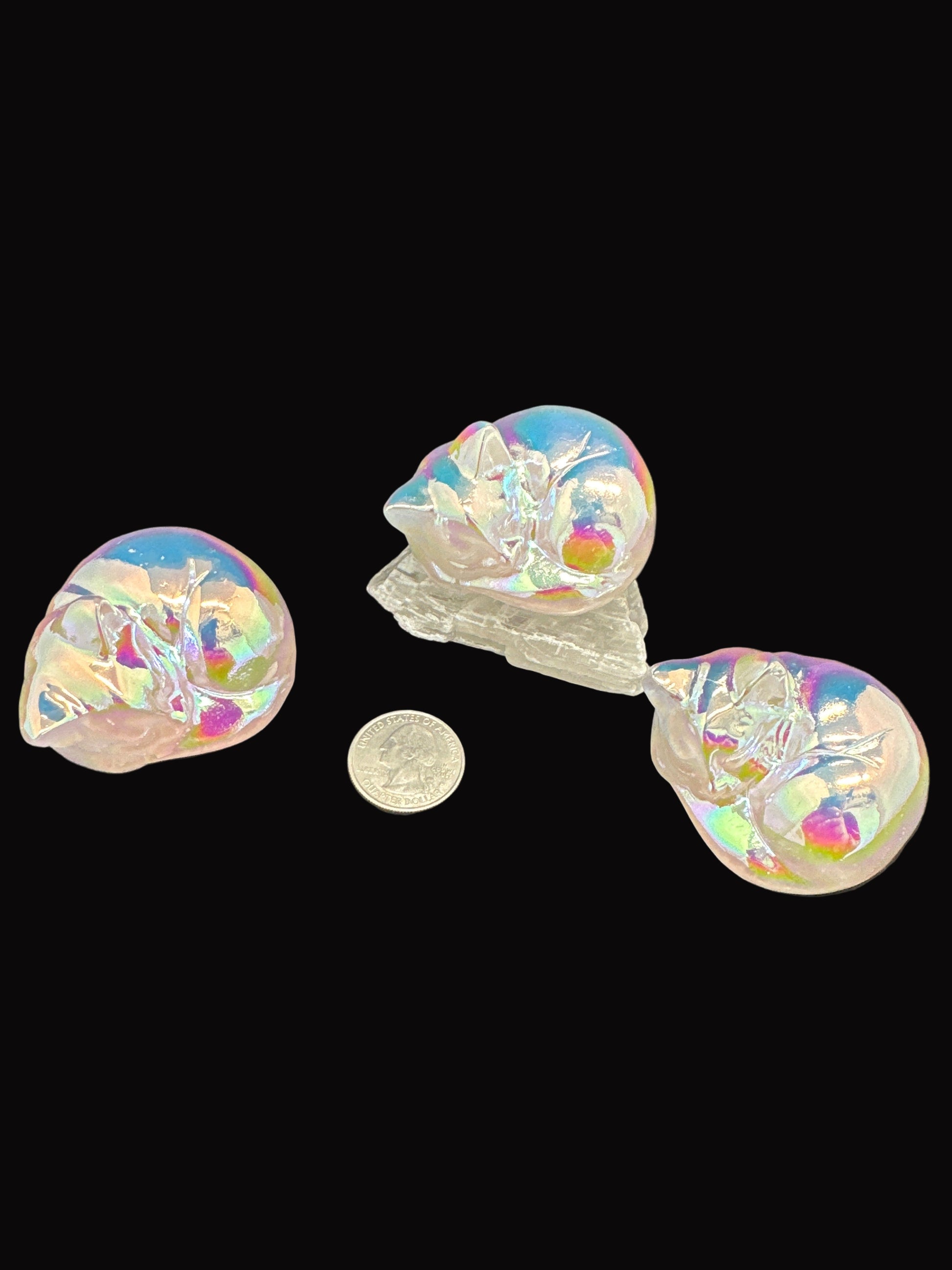 On a psychological and spiritual level, the energy of aura quartz enhances our heart chakra and pineal gland, removing any self worth doubts that we may be harboring. Its connection to the pineal gland is also the reason this mineral increases our psychic abilities and intuition. Spiritually, rose aura contains divine energies that facilitate contacts with the angelic realms and our spirit guides, attuning us to our spiritual purpose. The platinum in it actually enhances our connection with our angels and spirit guides and carries the energy patterns of human existence.